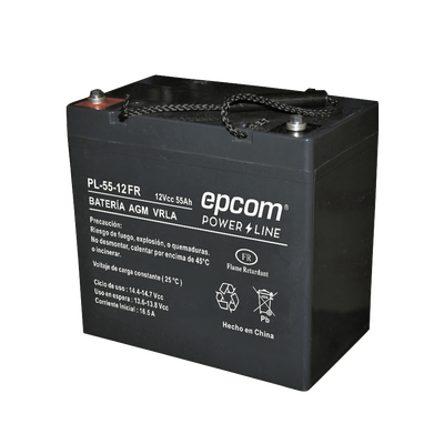 Batería de respaldo para equipo electronic / UL / 12V @ 55 Ah / Tecnología AGM-VRLA / Retardante a la flama / Uso en: Alarmas de intrusión / Incendio / Control de acceso / Video Vigilancia / Terminales tipo T12.