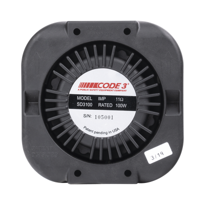 El diseño de bajo perfil de la serie C3100 ™ funciona con todas las sirenas Code 3. Las características incluyen alta eficiencia, montaje de rejilla fácil de instalar, soportes de montaje universales y específicos del vehículo, y produce un tono de baja frecuencia con amplificador Banshee®.