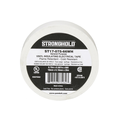 Cinta Eléctrica para Aislar, de PVC, Uso General, Grosor de 0.18mm (7 mil), Ancho de 19mm, y 20.12m de Largo, Color Blanco
