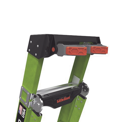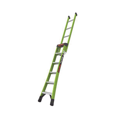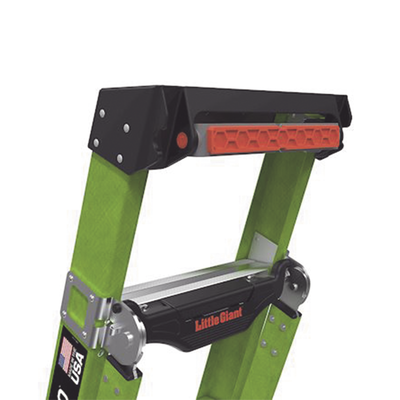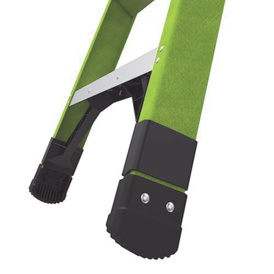 Es el sueño de un electricista hecho realidad. Fabricado con fibra de vidrio ligera y duradera, puede trabajar cerca de la electricidad sin temor a la conductividad. El color verde de alta visibilidad también promueve una mayor visibilidad para disminuir los golpes de la escalera.