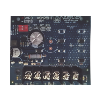 La fuente de alimentación / cargador Altronix SMP3 convierte una entrada de CA de bajo voltaje en una salida de 6 V CC, 12 V CC o 24 V CC. Esta unidad tiene una amplia gama de aplicaciones para accesorios de control de acceso, seguridad y sistemas de CCTV que requieren energía adicional.