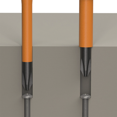 • Juego de desarmadores que incluye estos tamaños de punta: 2 puntas Phillips n.º 2, 2 puntas ranuradas de 1/4'', 1 punta Phillips n.º 1, 1 punta cuadrada n.º 1, 1 punta cuadrada n.º 2 y 1 punta ranurada de 3/16''.