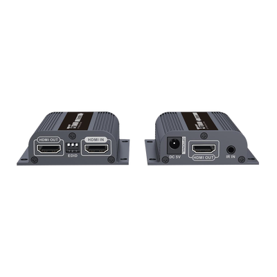 El kit extensor TT-372-EDID permite el envió de video a una distancia de 50 metros mediante cable UTP Cat6, cuenta con un interruptor EDID para adaptar la imagen transmitida a las capacidades del monitor o pantalla, tambien con 1 blaster TX y 1 blaster RX lo que nos permite la transmisión de señales si su equipo fuente cuenta con control remoto, su salida Loop HDMI en el transmisor permite colocar una pantalla de manera local para la función de monitoreo, gracias a la tecnología PoC solo requiere alimentación el equipo transmisor.